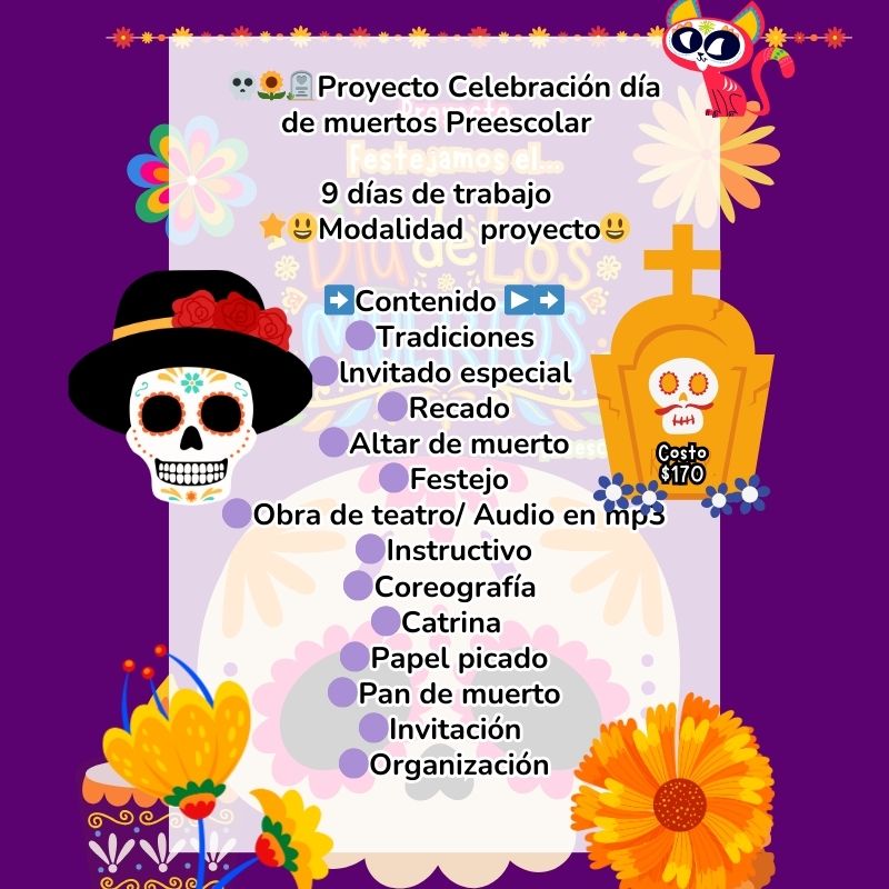 🎉 🩷🟠Proyecto Celebración Día de Muertos – Preescolar 💀🌻🪦$170